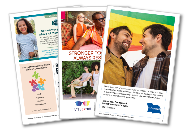 Want to show your support of the LGBTQ+ Community? Are you interested in having thousands of eyes on your brand? Consider advertising with the Portland Gay Men’s Chorus!